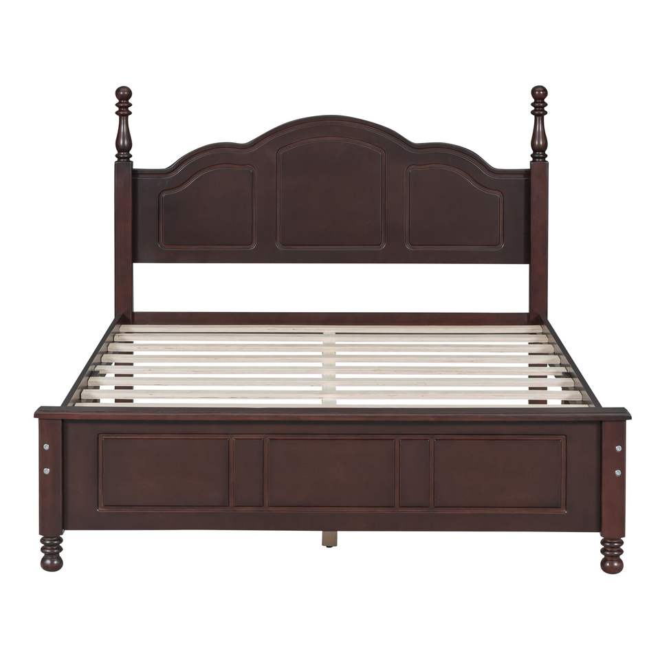 Letto a piattaforma in legno stile retrò a grandezza naturale con doghe in legno, noce scuro - Letti in legno eleganti