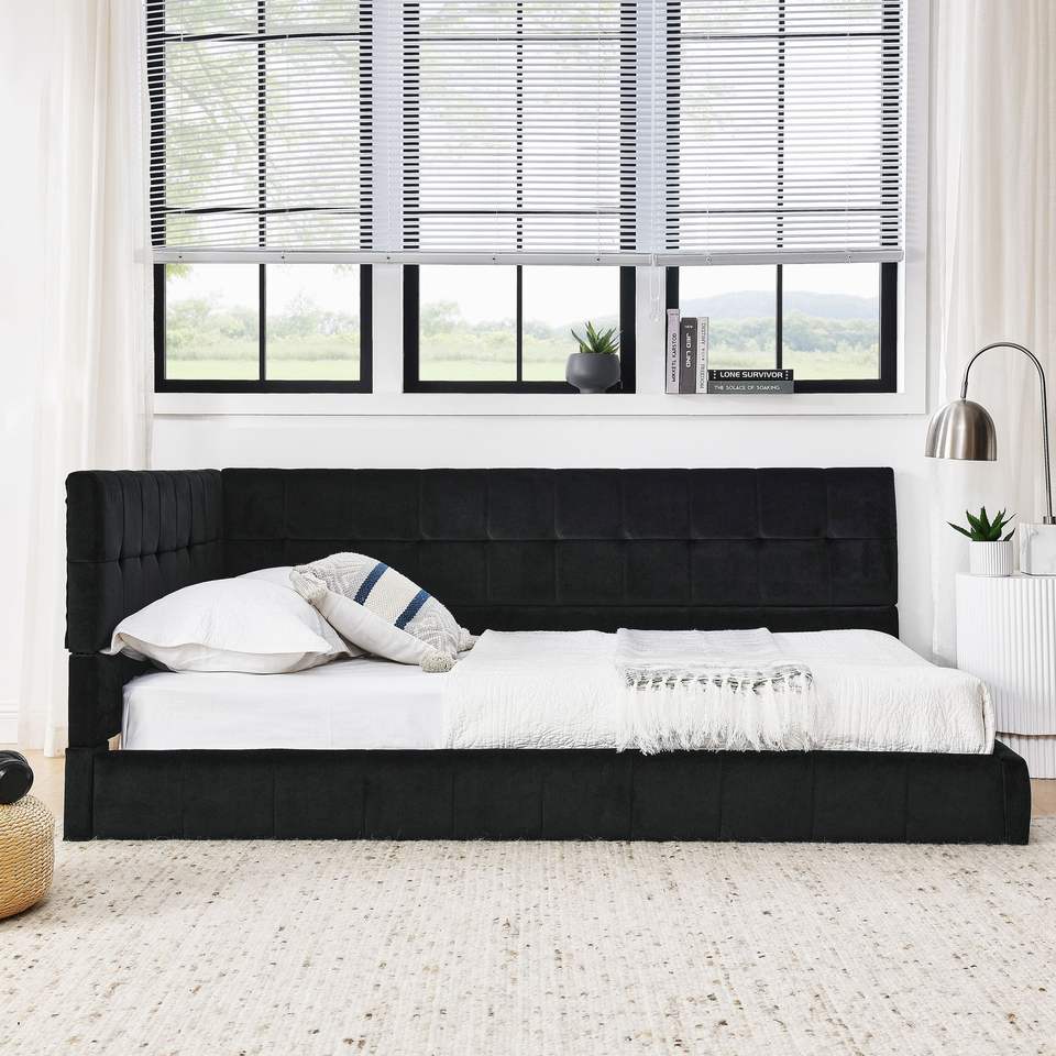 Letto Imbottito a Grandezza Naturale con Schienale Confortevole e Braccioli, Struttura Letto-Sofà per Camera da Letto e Soggiorno