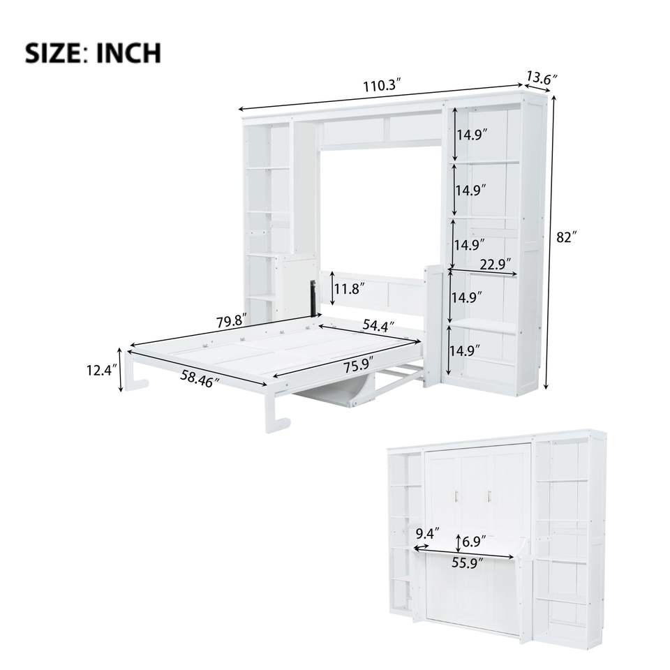 Letto Murphy a tutta altezza bianco con scrivania e libreria 12.7 ETA