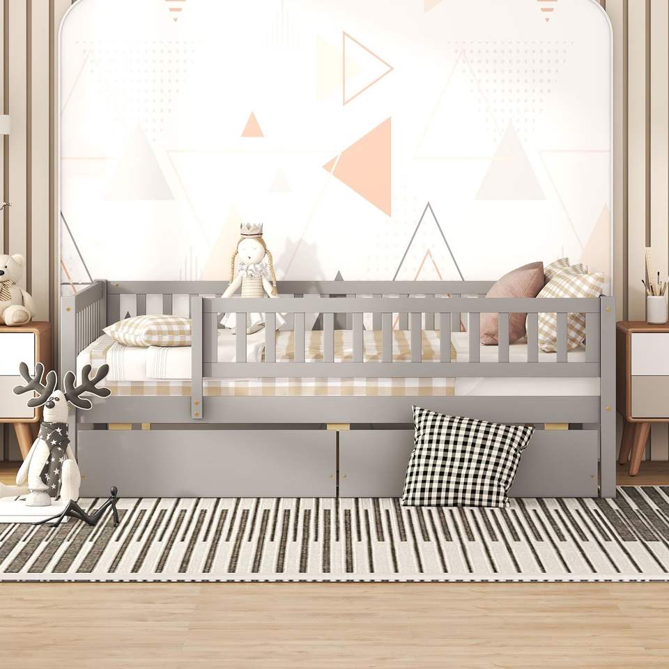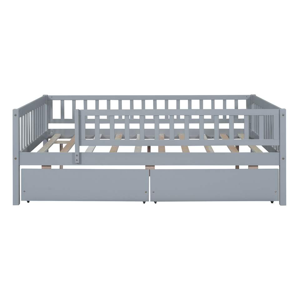 Divano letto matrimoniale in legno con due cassetti, colore grigio