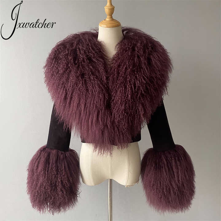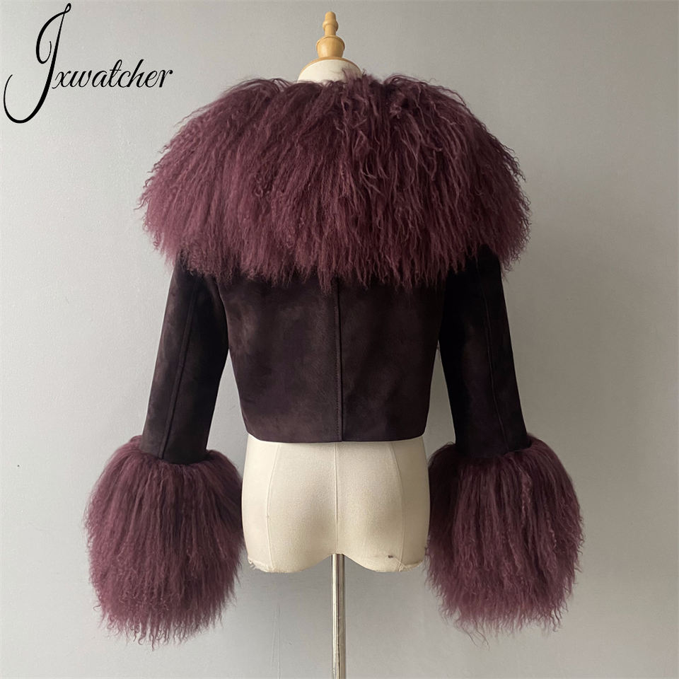 Full Sleeves Soft Women Genuine Sheepskin Coat Lamb Fur Collar Fall Winter OEM Custom Logo Cropped Real Sude Leather Jackets