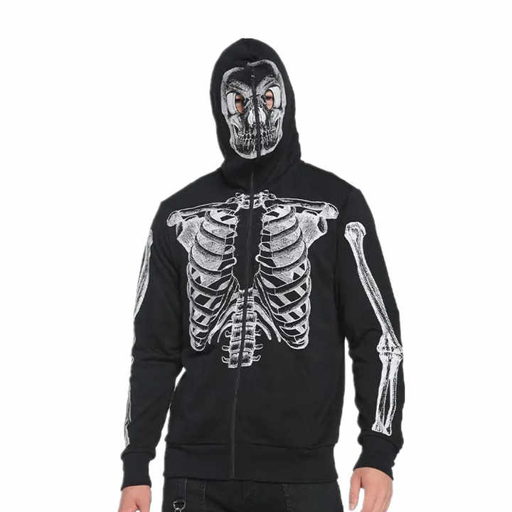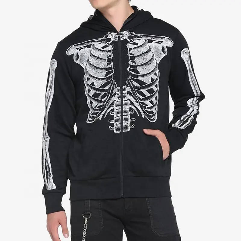 Full Zipper up Hoodie Skull Skeleton Black OEM Y2k Premium Men Hoodie Sweatshirts
