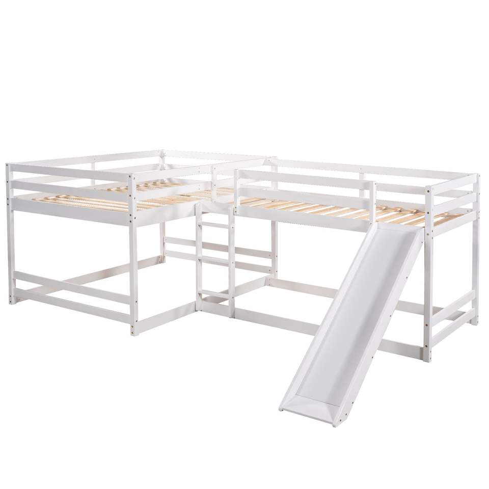 Full and Twin Size L-Shaped Bunk Bed with Slide and Short Ladder for Kids