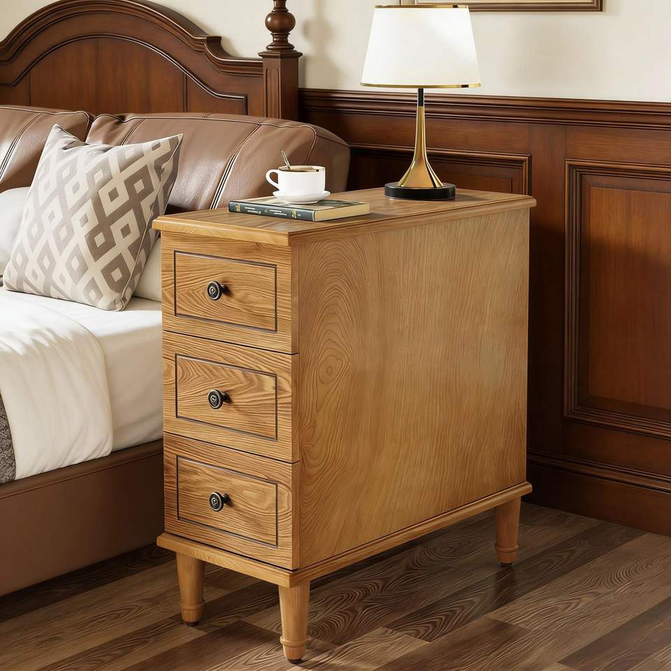 Comodino stretto a 3 cassetti in legno, completamente assemblato, con cassetti di alta qualità