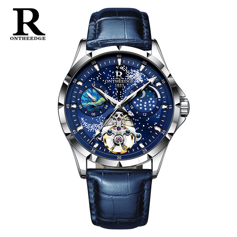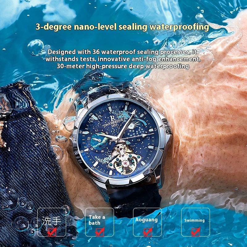 Orologio da Uomo Meccanico Completamente Automatico con Luce Notturna Tourbillon Calendario Impermeabile Cassa in Acciaio Inossidabile Design Scheletrato Piccolo Orologio