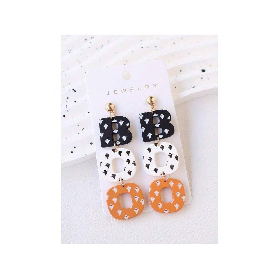 Fun and Cute 1pair Halloween Ghost Printed BOO Earrings Acrylic and Polymer Clay for Parties Holiday Gifts Fun Accessory