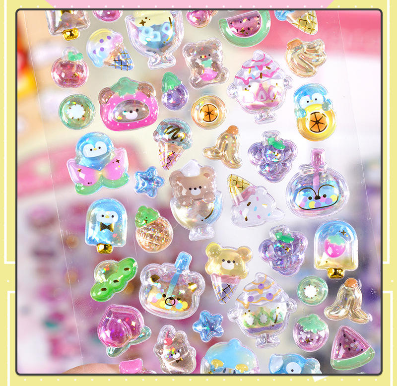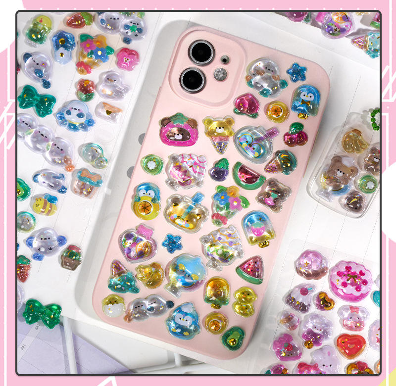 Funny 3D Sticker Embossed Finishing with 4 Color Printing High-definition Transparent Pattern Sticker