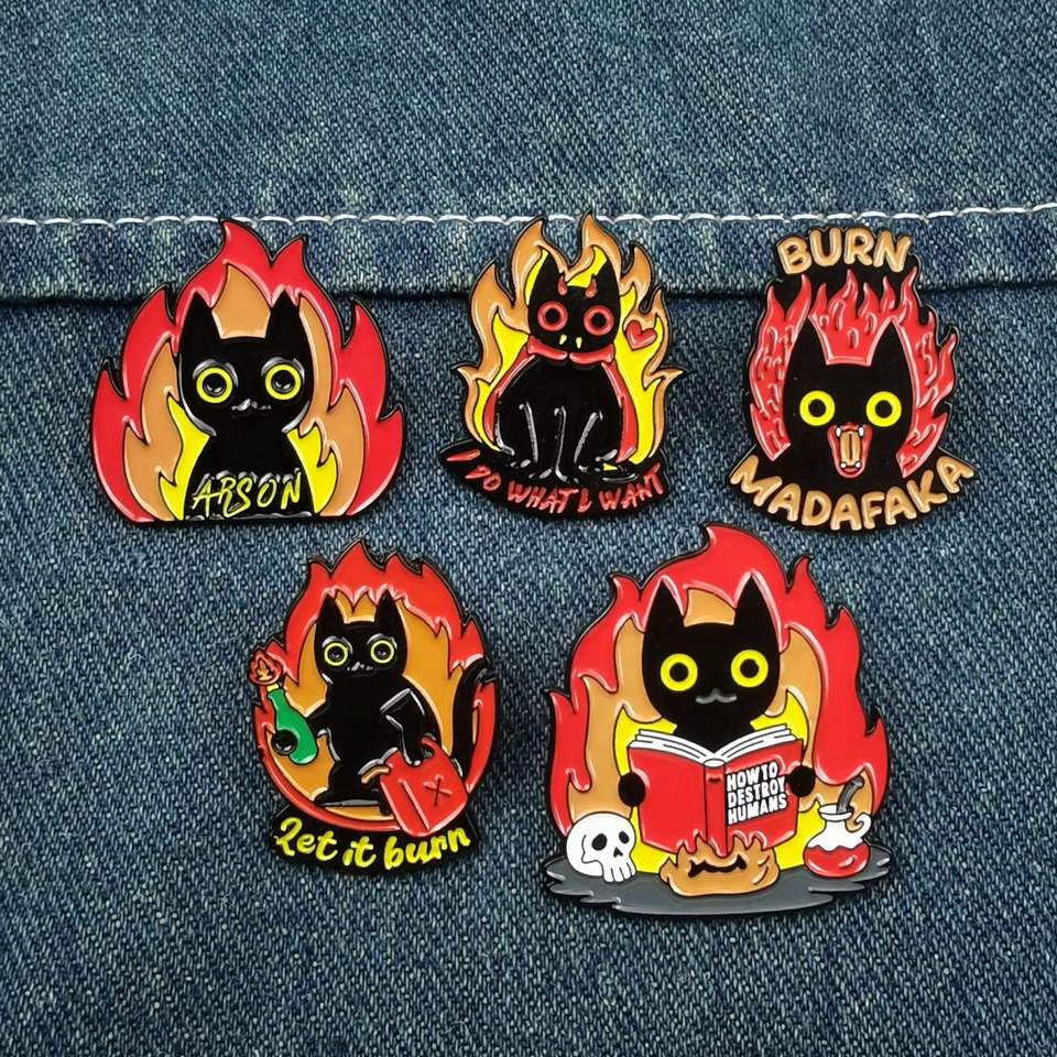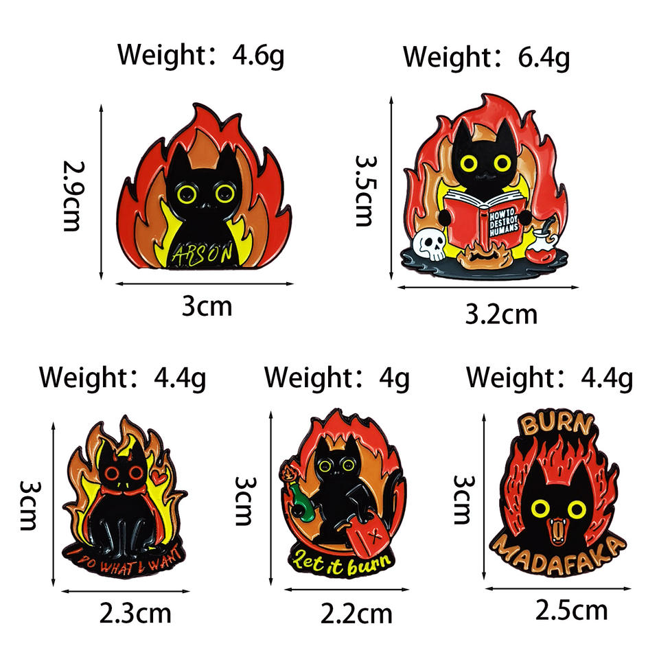 Nome del prodotto:Distintivo con spilla in metallo con gatto fiamma cartone animato