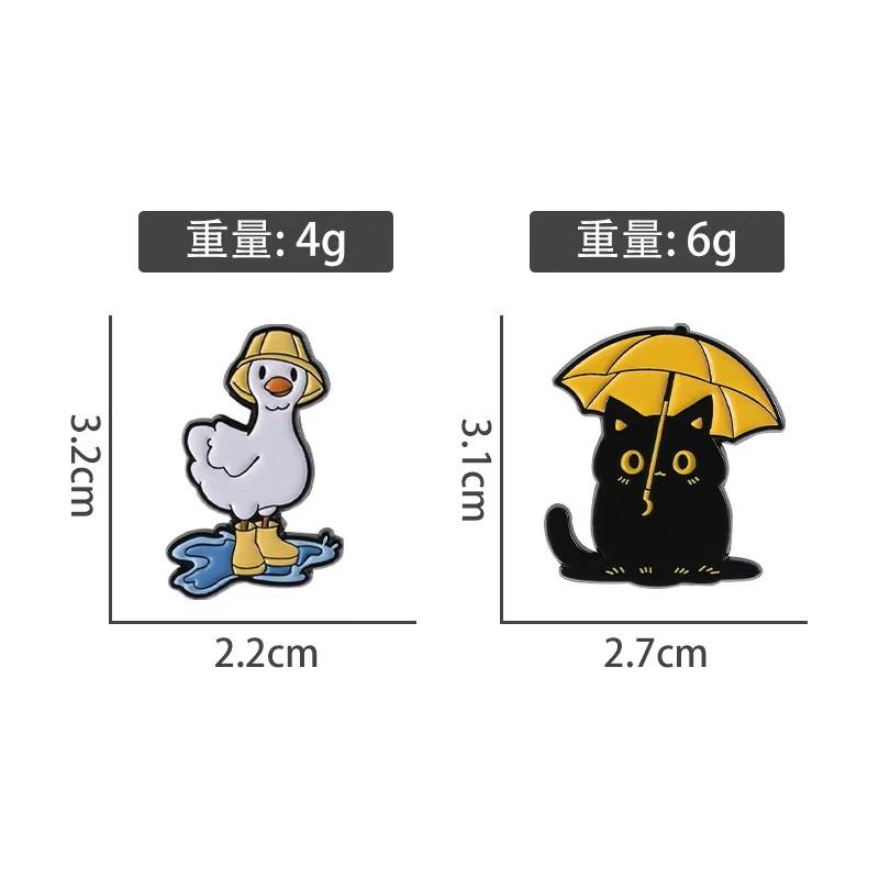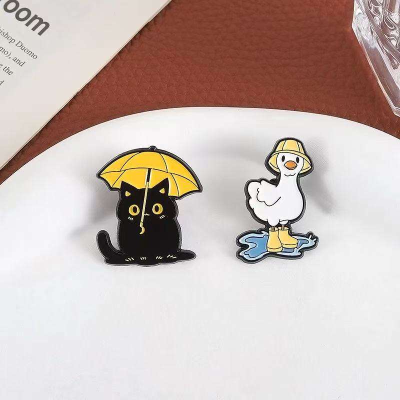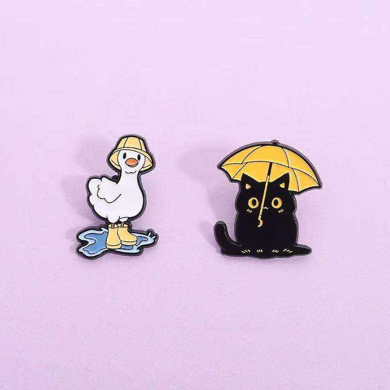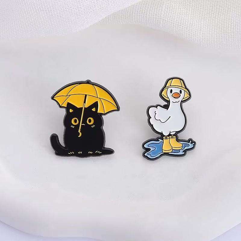Divertente nero per con ombrello anatra con stivali da pioggia a tema pozzanghera in lega di zinco metallo per spille smaltate