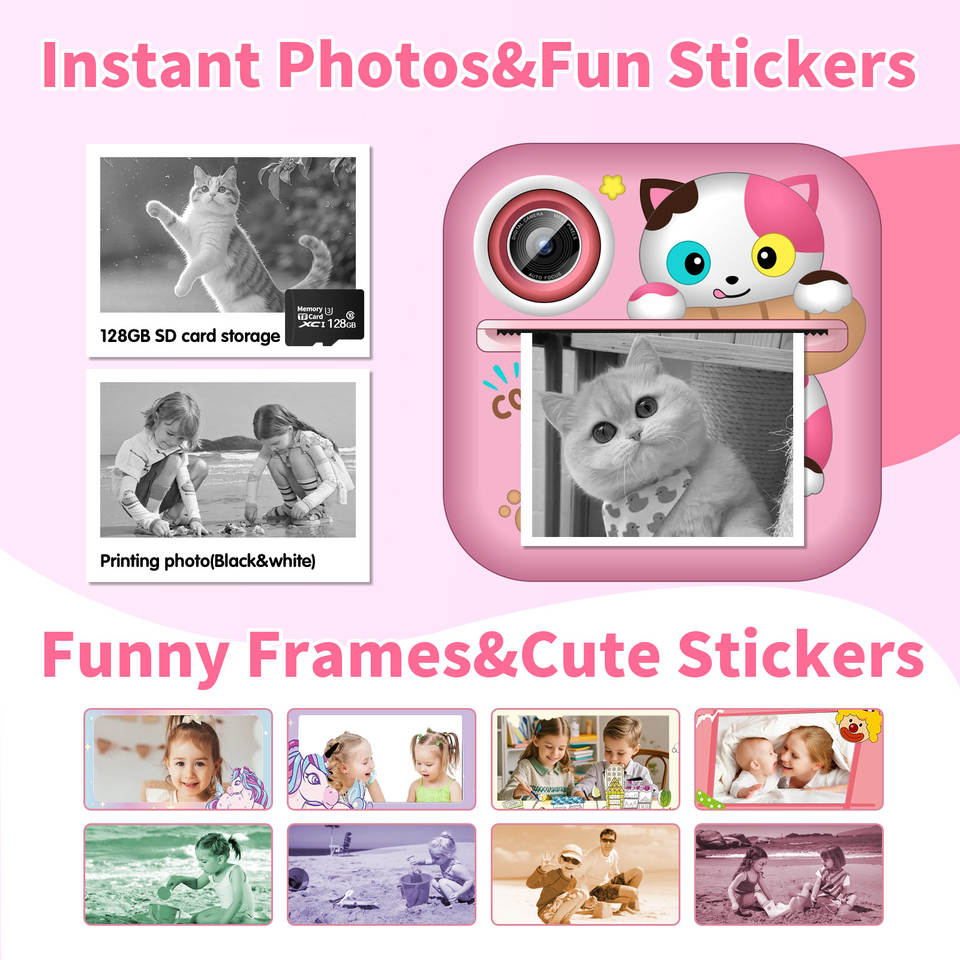 Divertente Mini Fotocamera Cartoon con Schermo da 2,36 Pollici, Doppia Lente, Videogiochi, Videocamera Digitale per Bambini con Giochi e MP3