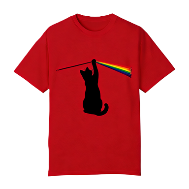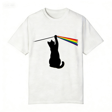 Funny Cat Prism Graphic T-Shirt Men's Rainbow Dark Side of the Moon Parody Tee