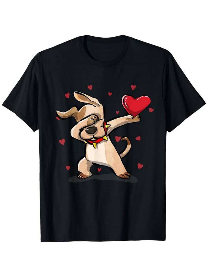 Funny Dabbing Dog Valentine's Day T-Shirt For Kids Plus Size Printed Cotton Design Machine Washable Gift For Boys Girls