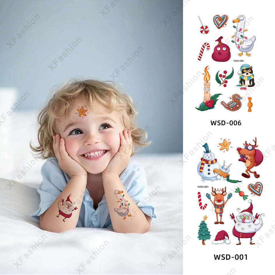 Funny Deer Snowman Christmas Temporary Tattoos for Kids-Body Application Eco-Friendly Water Transfer Paper Durable