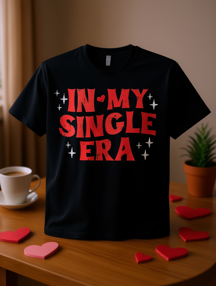 Funny In My Single Era T-Shirt Red Humorous Saying With Hearts Loose Fit Casual Valentine's Day Gift For Women Men 100% Cotton