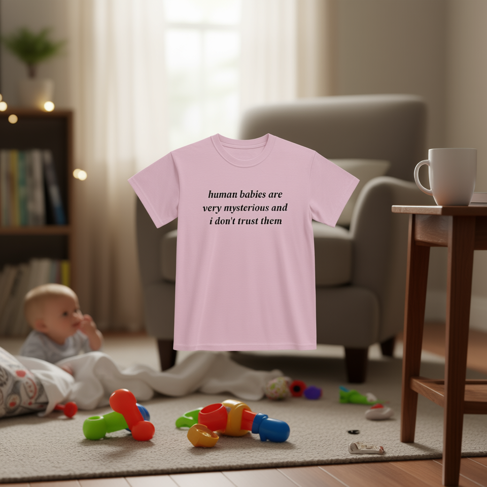 T-Shirt Divertente con Meme 'I Bambini Umani Sono Misteriosi', Maglietta Ironica e Sarcastica per Adulti