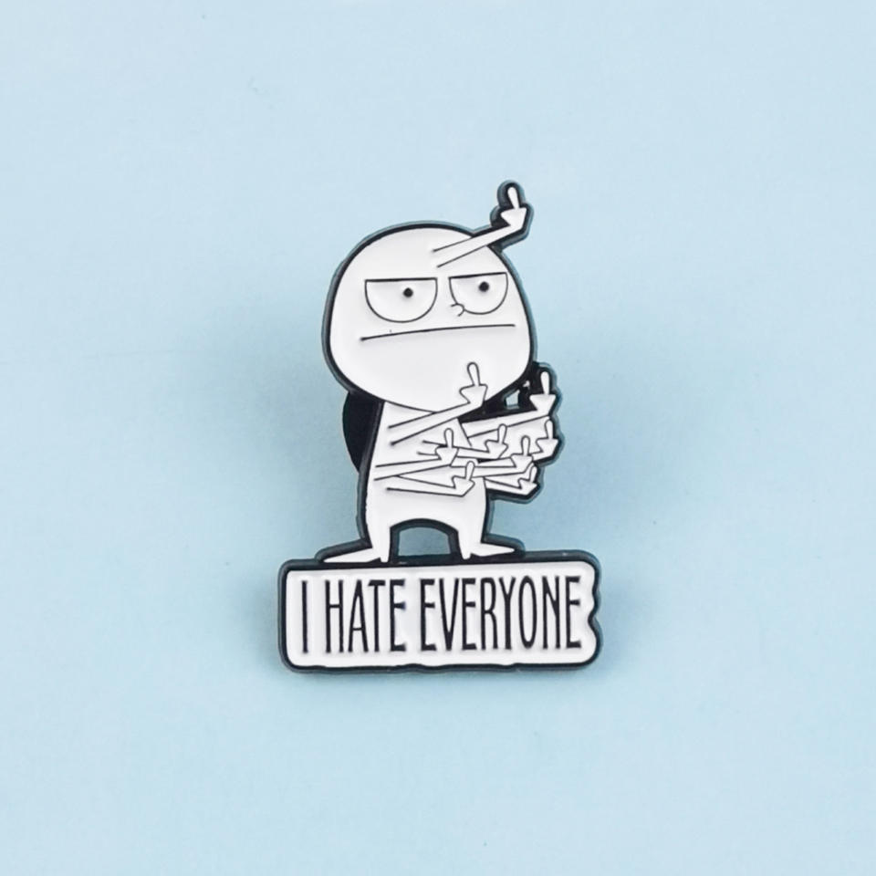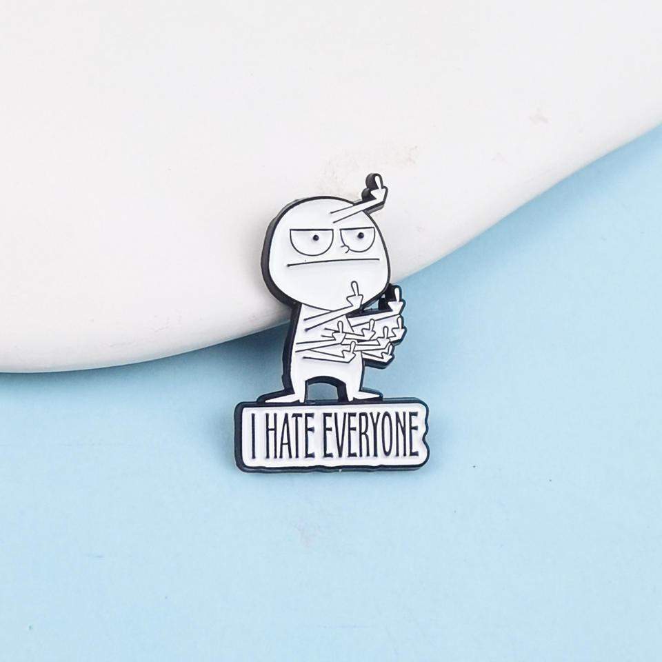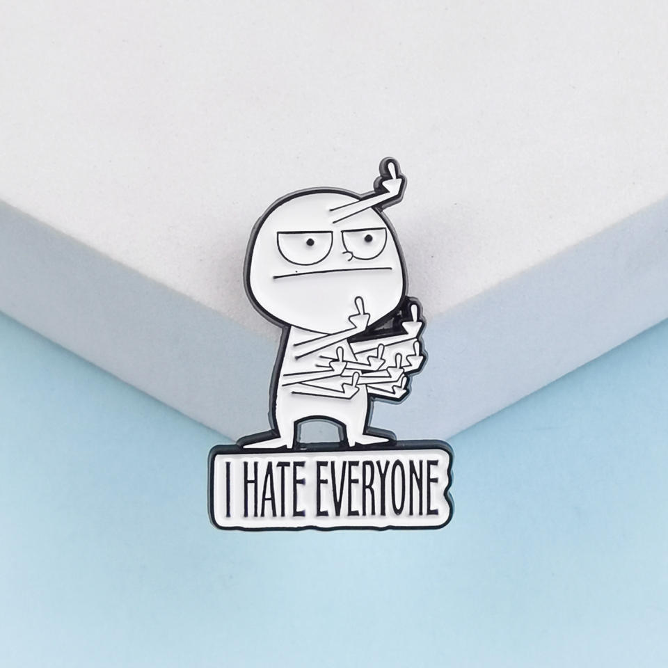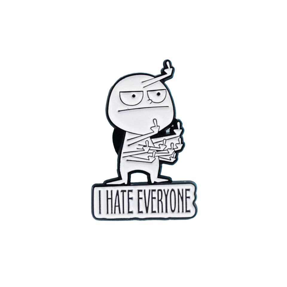 Divertente spilla per il cattivo del dito medio distintivo Design creativo stile frase inglese odio tutti spilla smaltata