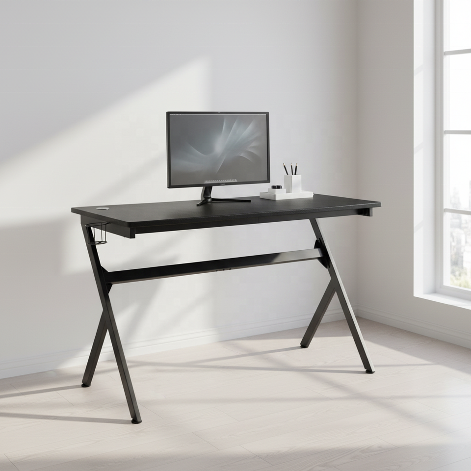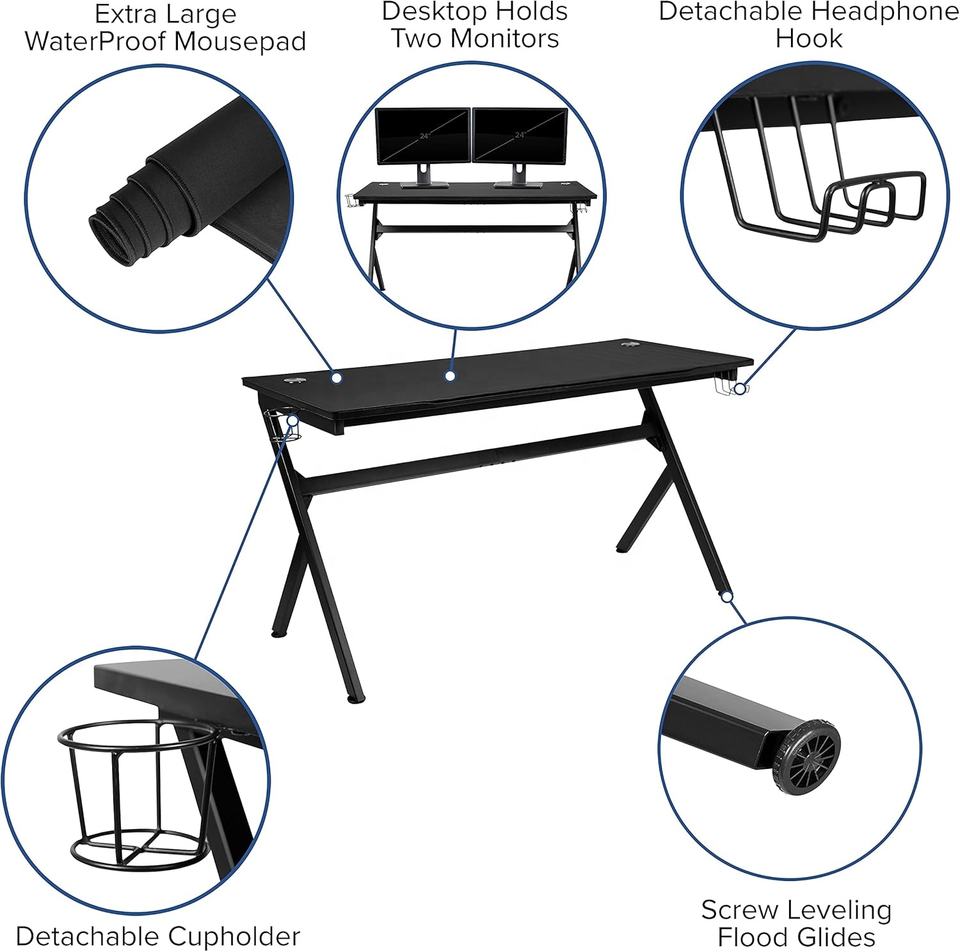 Furniture Duncan 55" X 24" Durable Y-Shape Extra Large Gaming Desk with Headphone Hook Cup Holder MDF