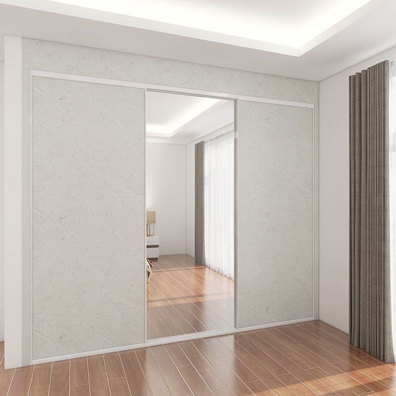Furnitures Bedroom Modern Sliding Door Wooden Wardrobe with Lattice Glass Waist