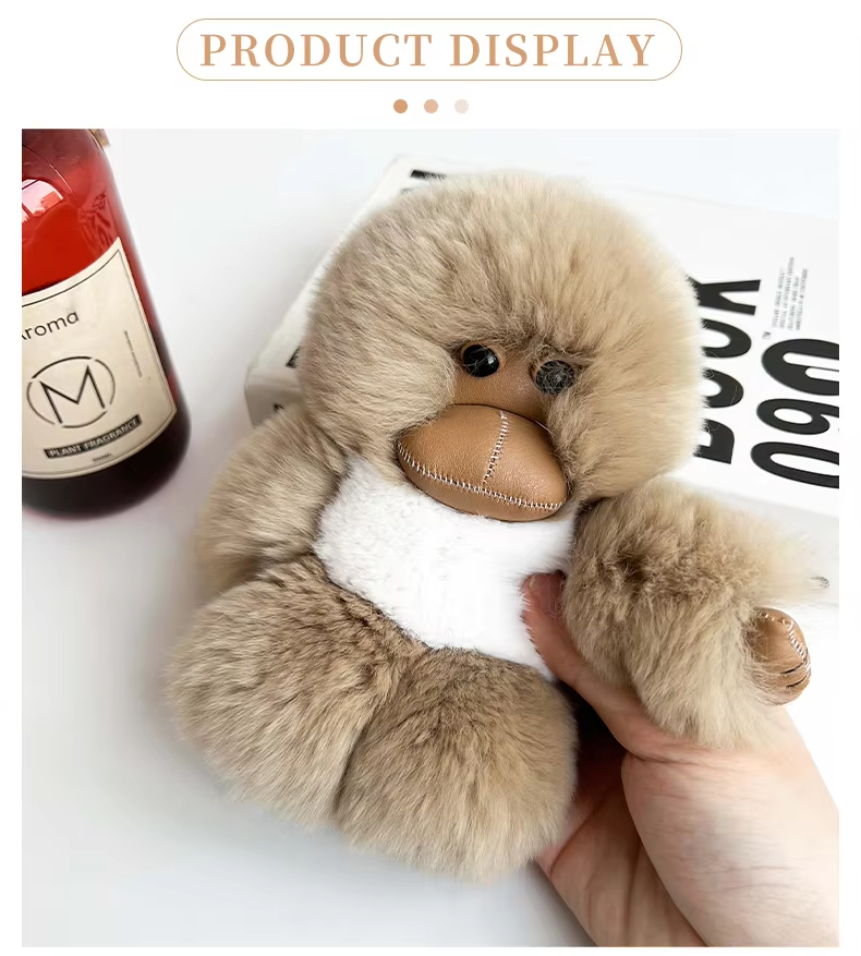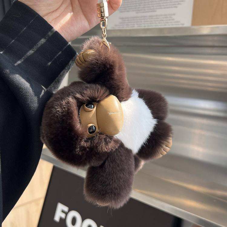 Scimmietta Pelosa a Braccia Lunghe di Alta Qualità, Accessorio in Pelo di Coniglio, Giocattolo Autentico per Chiavi dell'Auto, Zaini e Regali