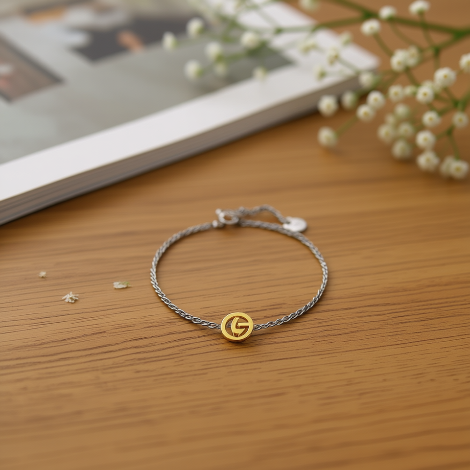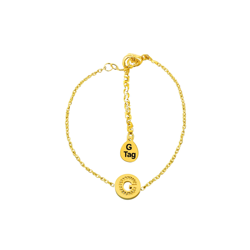 Etichetta pendente monofacciale da 1 cm con lettera G su un bracciale in acciaio inossidabile