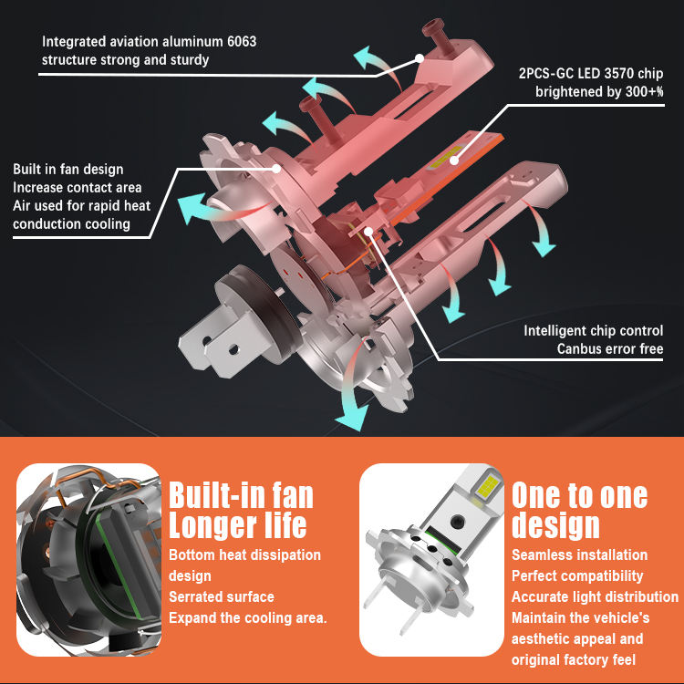 G-VIEW Factory GMX Mini Size With Turbo Fan Top Lumens 8000lm 60 Watts H7 LED Headlights 6000K LED Headlamp Light Bulbs