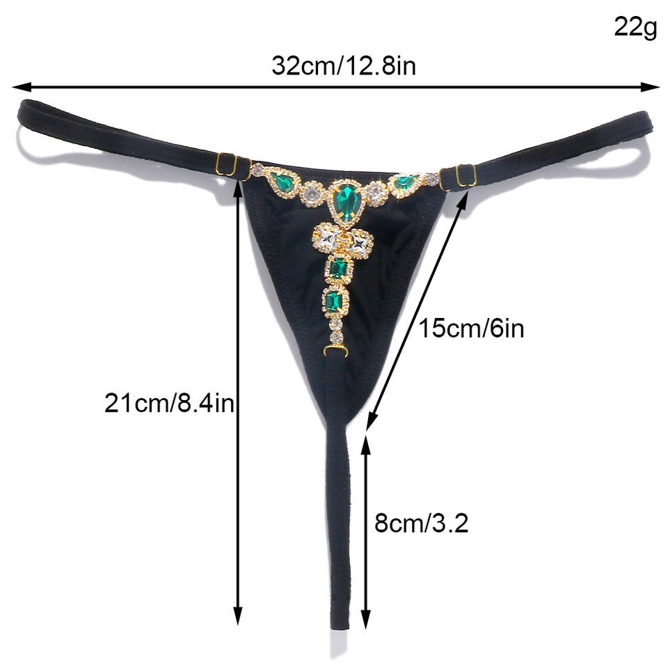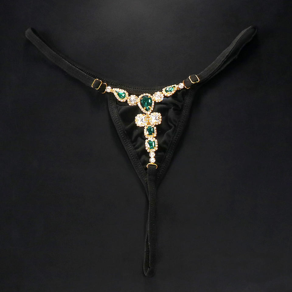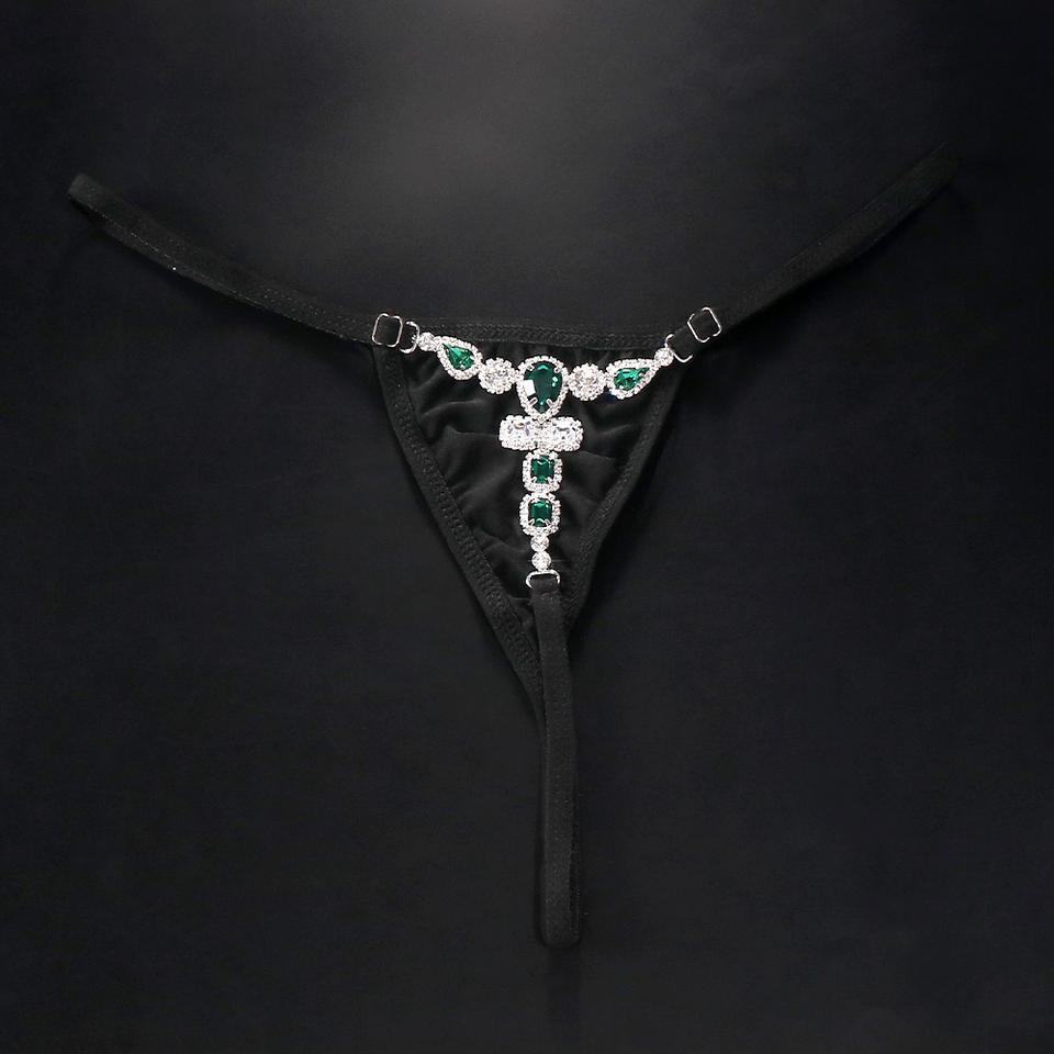Perizoma con Strass Verdi Sexy Mutandine Nere a Vita Media Micro Tanga con Cristalli Gioiello per Donna