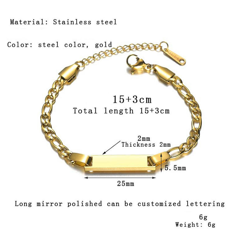 G1373 increspato placcato oro bambino bambino catena in acciaio inox fascino nome personalizzato gioielli personalizzati all'ingrosso bracciali per i bambini