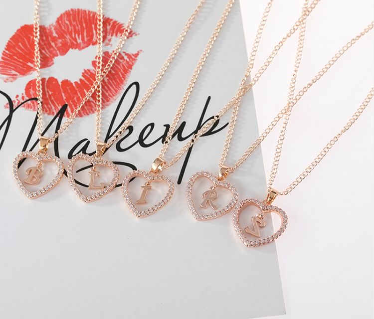 G159 Valentines Day Gifts Rose Gold a to Z Fashion Zircon Name Alphabet Letter Heart Necklace with Initial