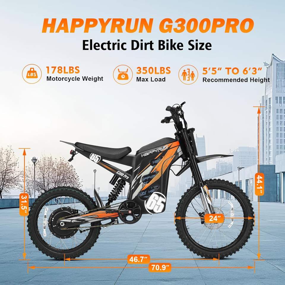 G300 Pro Aluminum Electric Dirt Bike for Adults 12V 70Ah Battery 6500W Motor 50 MPH Speed 70 Mile Range 350 Lbs Load Capacity