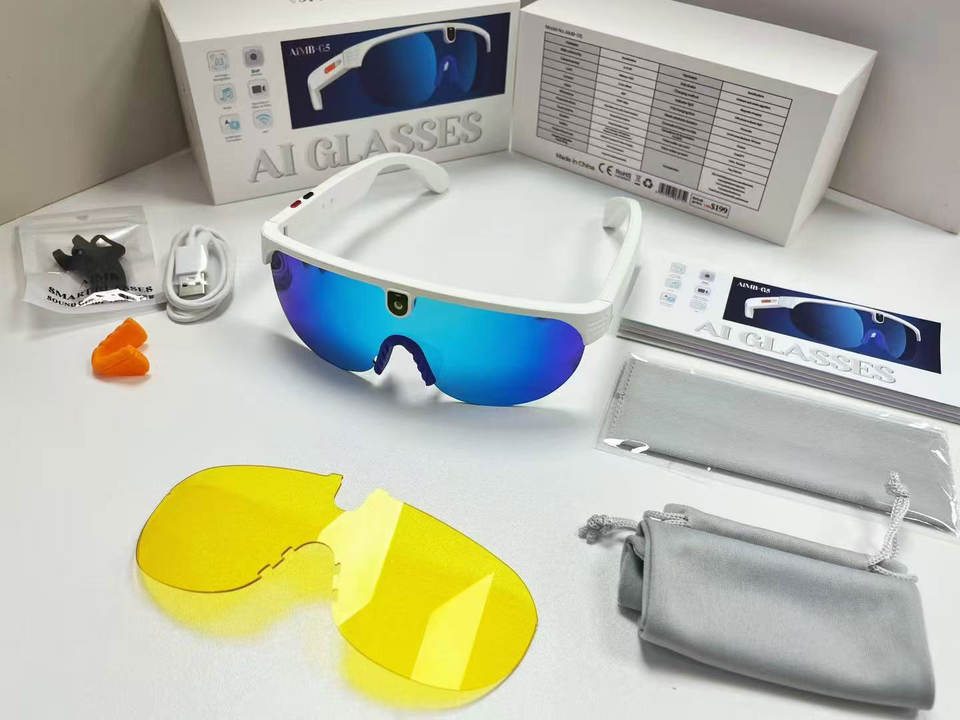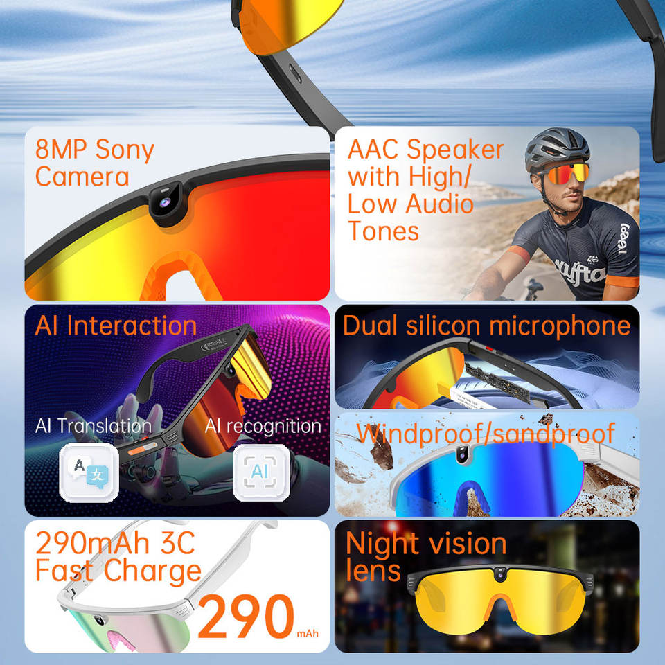 Occhiali Sportivi G5 con Protezione UV, AI Smart 8MP, Antivento, Riproduzione, Chat GPT, Traduzione AI, 2 Lenti, Trasferimento Wi-Fi