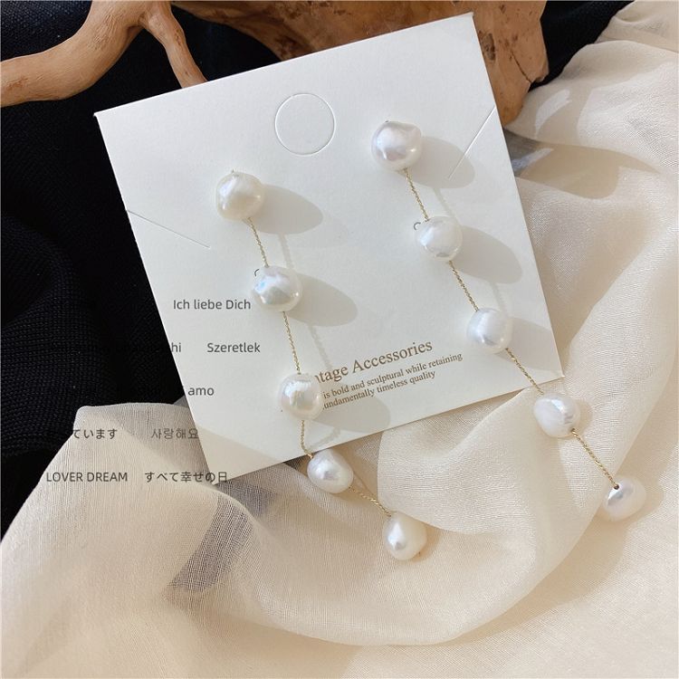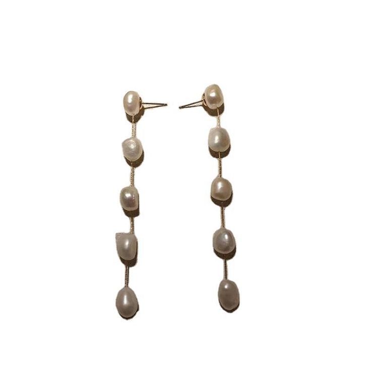 G520 orecchino di perle d'acqua dolce perno gioielli in stile coreano ciondola l'orecchino a goccia lungo orecchino appeso di perle reali per le signore