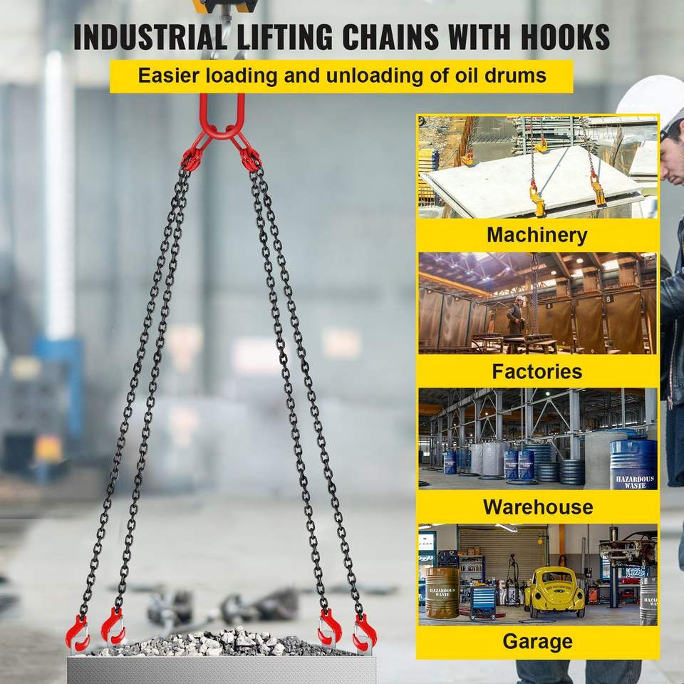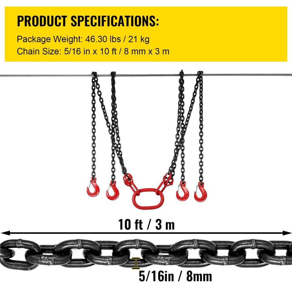 Paranco a catena per motore G80, catene di sollevamento da 5/16 pollici x 10 piedi, capacità 11000 libbre/5 tonnellate, nuovo imbracatura a catena da 5/16 pollici x 10 piedi per motore