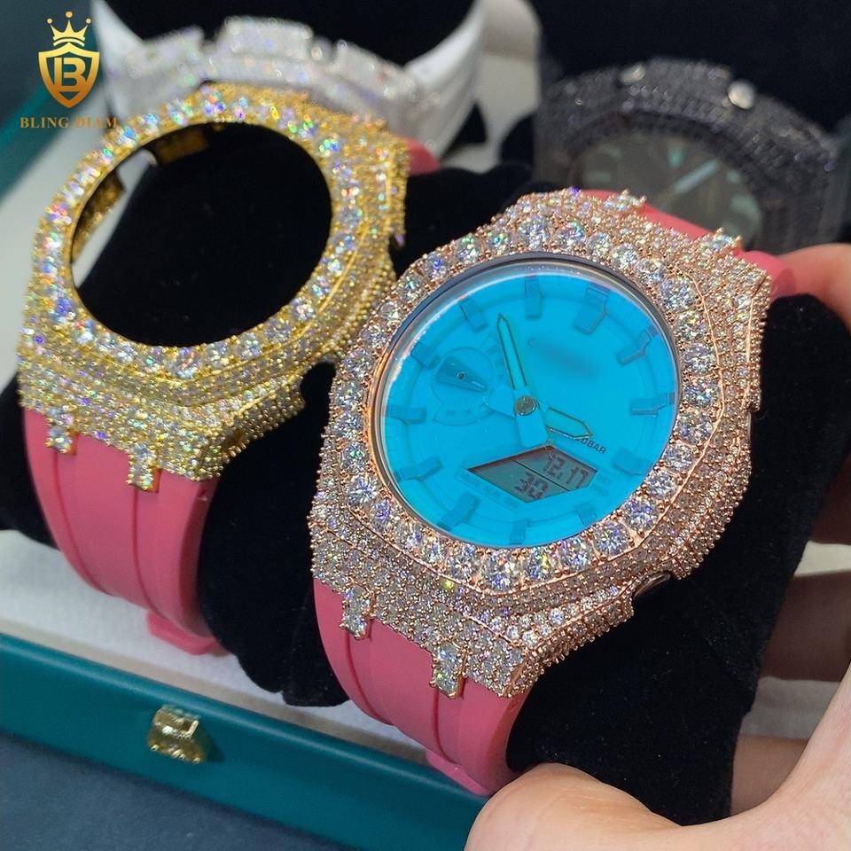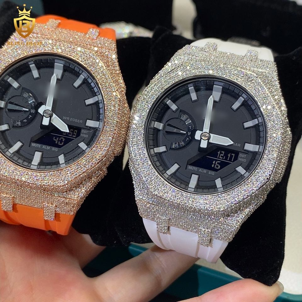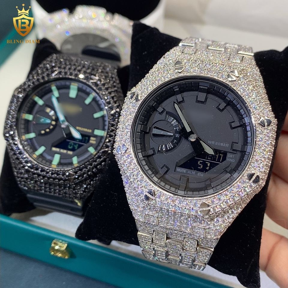 GA2100 Series Popular Design Bezel Diamond Watch Case Men 925 Sterling Silver Watch D VVS Moissanite Watch Case GRA Certified