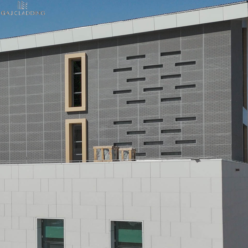 Rivestimento per Pareti Esterne GAJ, Finitura in Mattoni Grigi Preverniciati, Pannelli in Fibrocemento per Progetti Scolastici