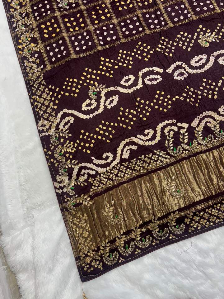 GAJI SILK SAREE WITH EMBROIDERY WORK IN PALU AND BORDER WITH BLOUSE PEACE