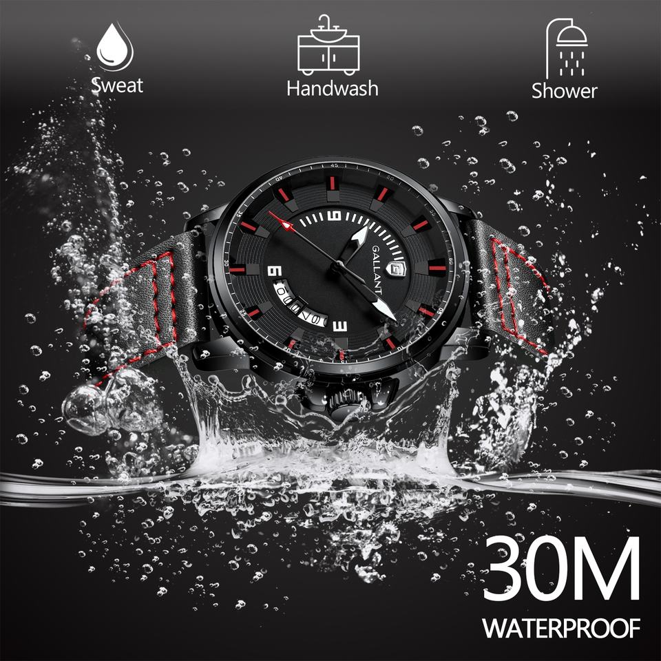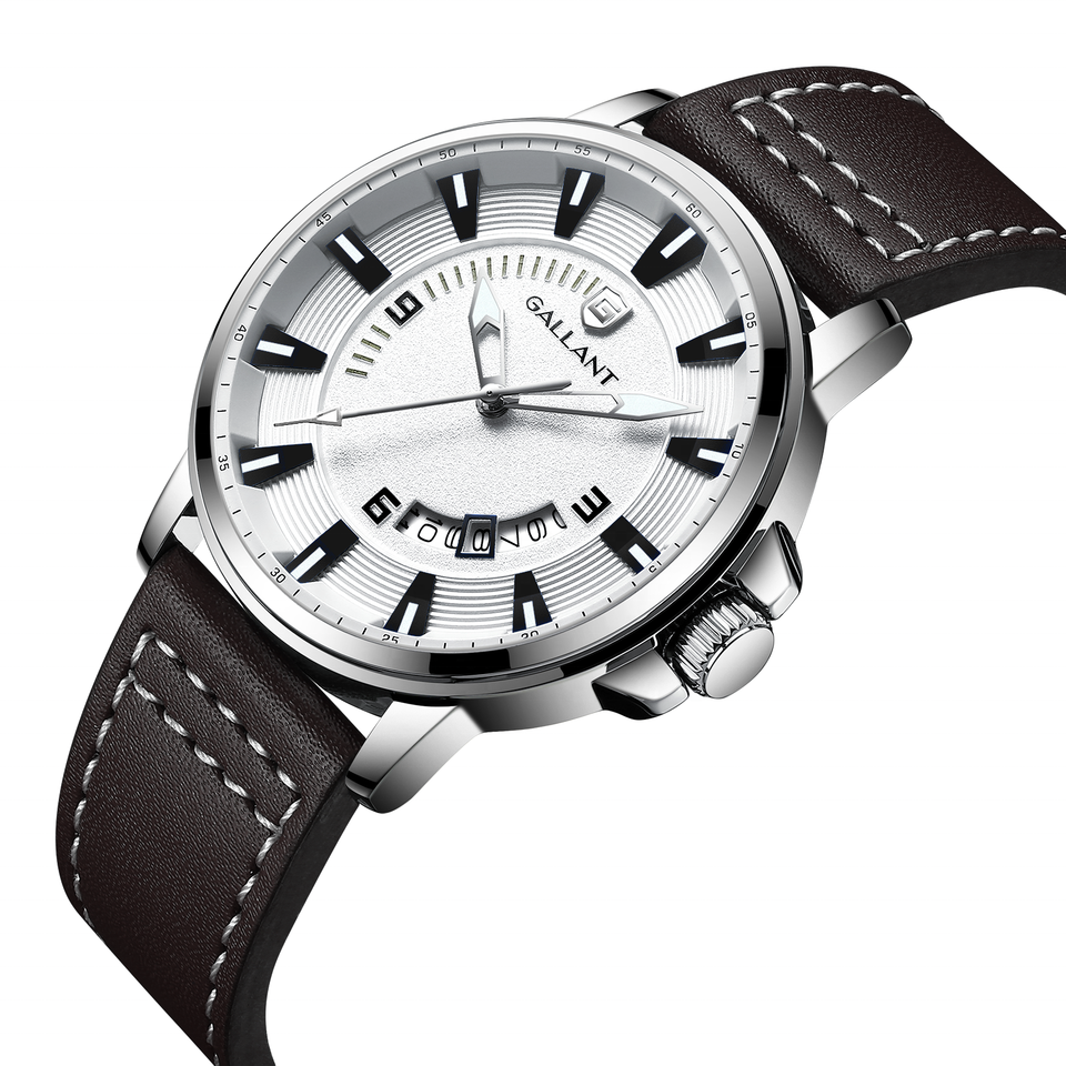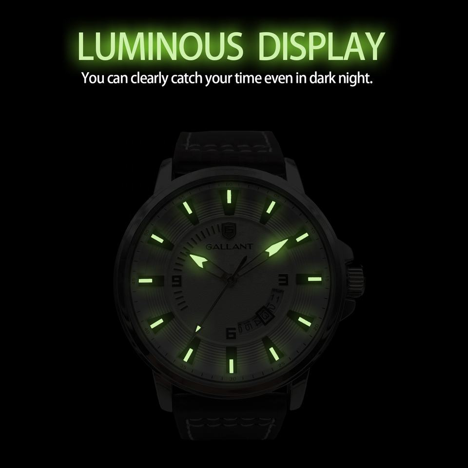 GALLANT Stainless Steel Mineral Glass Japanese Quartz Movement Date Luminous Dial 5 ATM Men Wristwatches