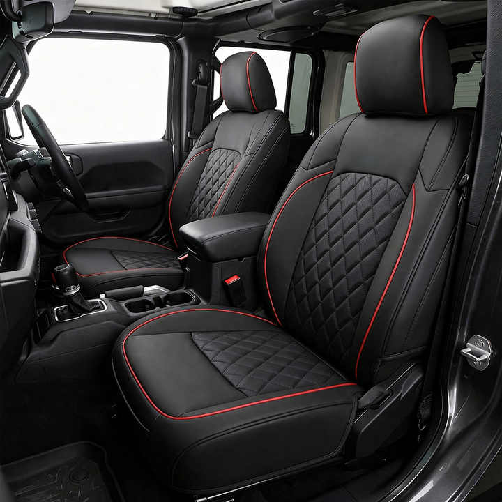 Coprisedili Auto GANE Personalizzati in Pelle Nappa con Motivo a Diamante Completo Adatti per Jeep Wrangler Grand Cherokee