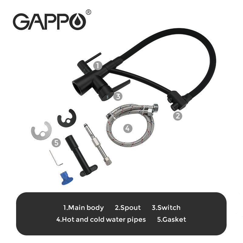 GAPPO acqua potabile acqua di rubinetto sistema di filtro da cucina flessibile lavello rubinetto con tubo di depurazione dell'acqua