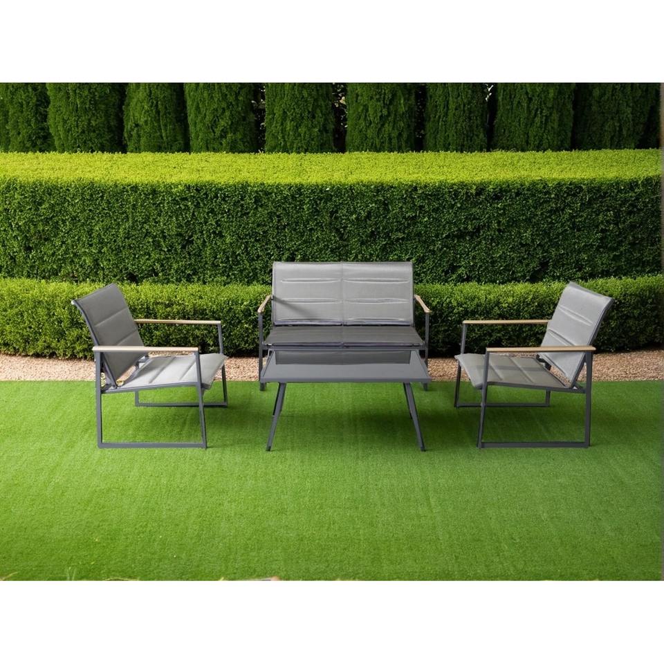 Salotto da giardino in metallo antracite e textilene