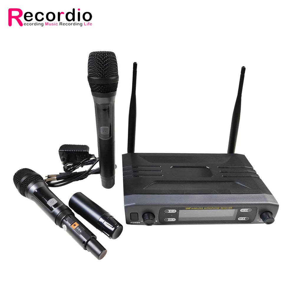 Microfono Wireless GAW-240 Recordio a 2 Canali UHF Professionale Portatile per Feste e Conferenze