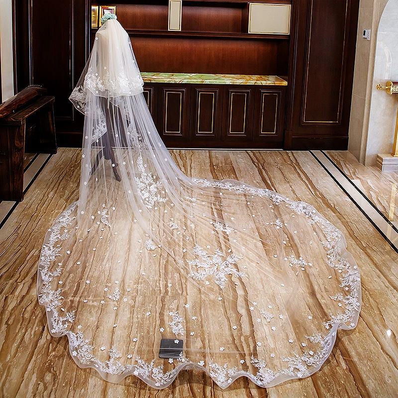 GENYA hot style fashion veli da sposa lunghi veli da sposa in pizzo accessori per capelli da sposa veli all'ingrosso