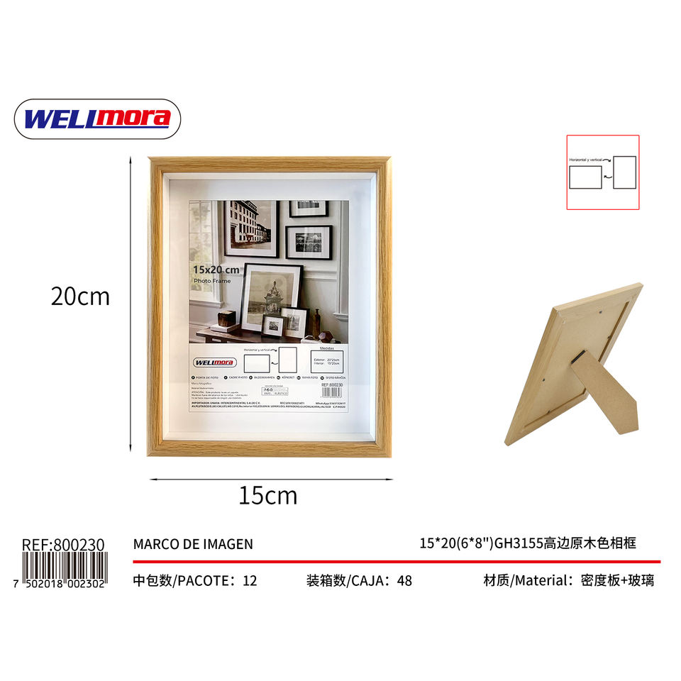 Cornice Fotografica Welimora 15x20cm in Legno con Vetro Frontale, Montaggio a Parete, Stile Classico Rettangolare