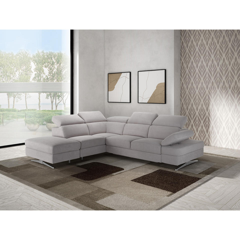 Divano Angolare Sinistro GIADA in Tessuto Grigio Chiaro per Soggiorno