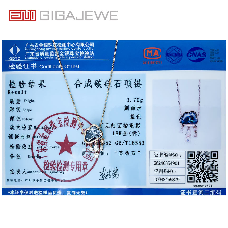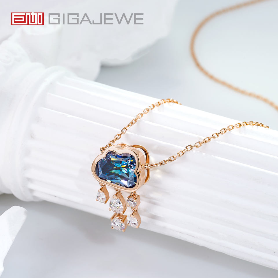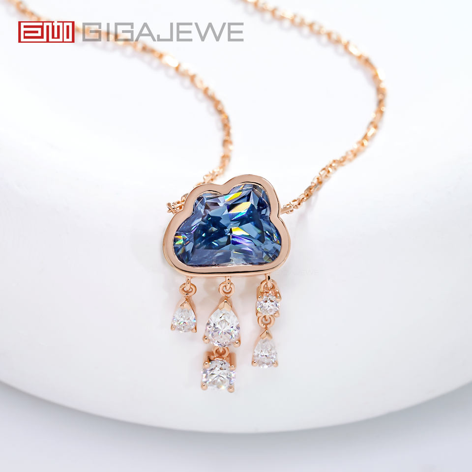GIGAJEWE 9K/14K/18K Rose Solid Gold 9.5*7 MM 3ct Cloud Cut Natural Blue Color Moissanite Necklace, Rain Cloud Necklace, Gift