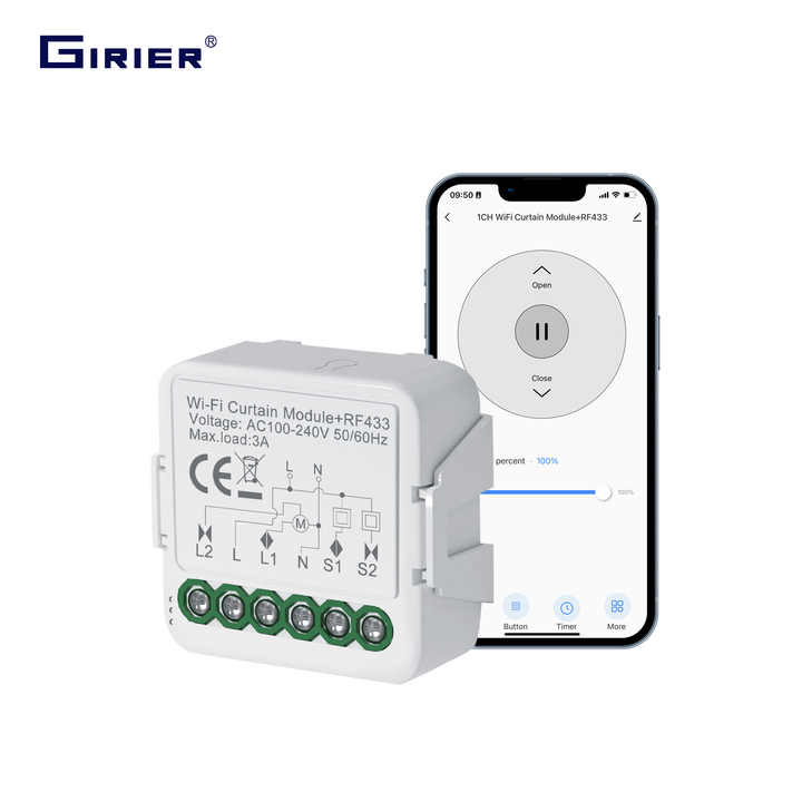 Modulo Switch GIRIER Smart Home WiFi RF433 per Tende, Relè di Automazione Fai-da-Te per Motore Elettrico di Tapparelle e Avvolgibili