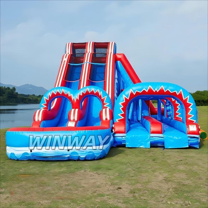 Squalo gigante e durevole a tema acquatico gonfiabile parco a doppia corsia avventura per bambini divertimento acquatico