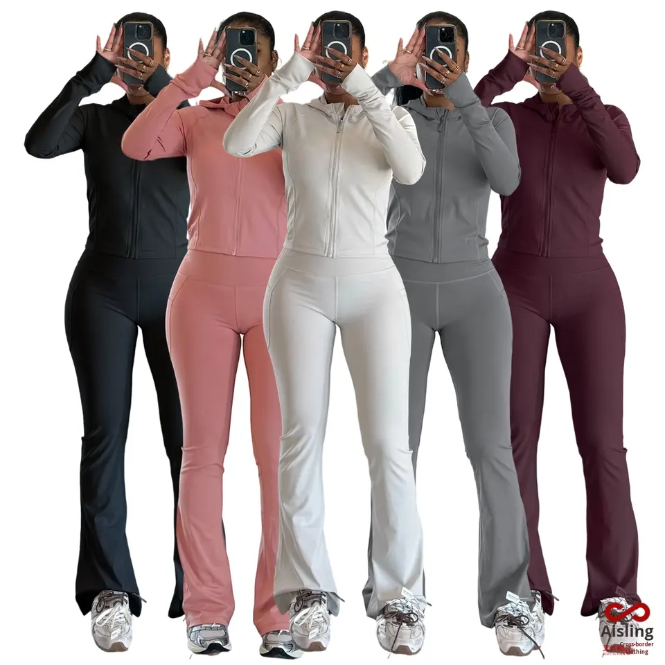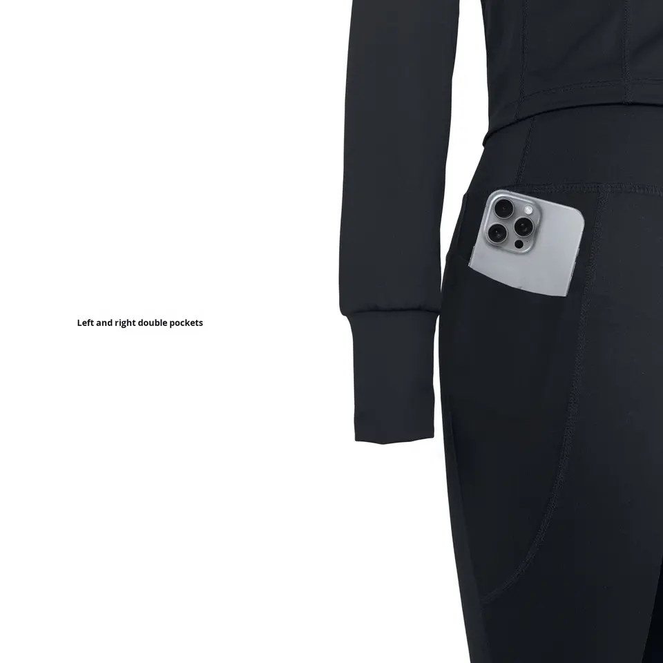 GL6806 Set Yoga Solido a Maniche Lunghe, Aderente, Asciugatura Rapida, con Tasche e Cerniera, per Fitness, Corsa e Sport all'Aperto