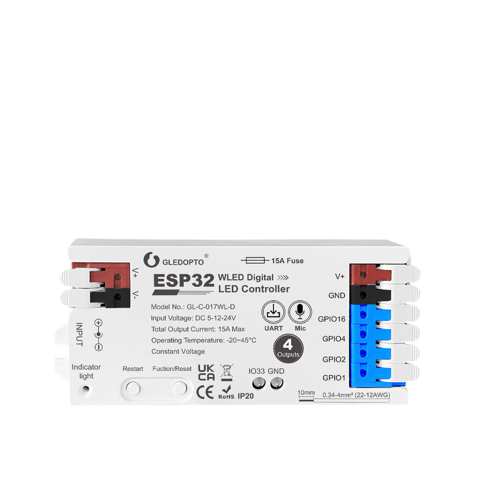 GLEDOPTO Type-C UART Download Port 4 Output App di controllo ESP32 WLED digitale LED Controller di vendita a caldo telecomando per WLED
