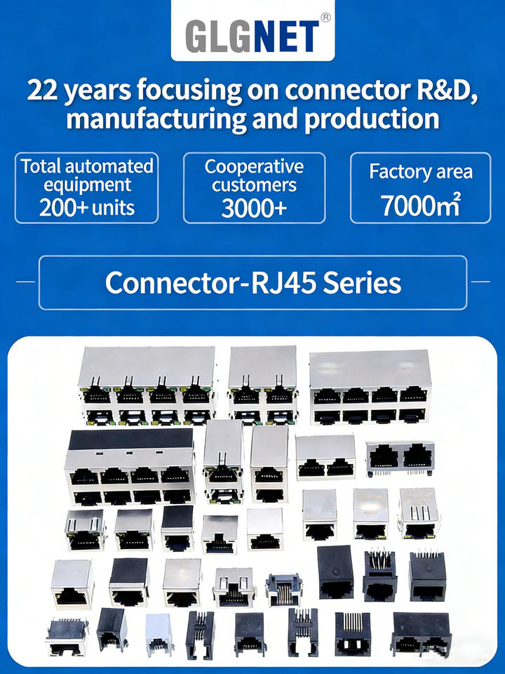 GLGNET Connettore RJ45 a 4 Porte di Alta Qualità con Filtro Magnetico Schermato per Applicazioni Ethernet, Presa RJ45 Femmina con Contatti Placcati in Oro