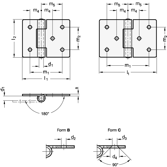 GN 136 Furniture Hinges Horizontally Extended Sheet Metal Hinges